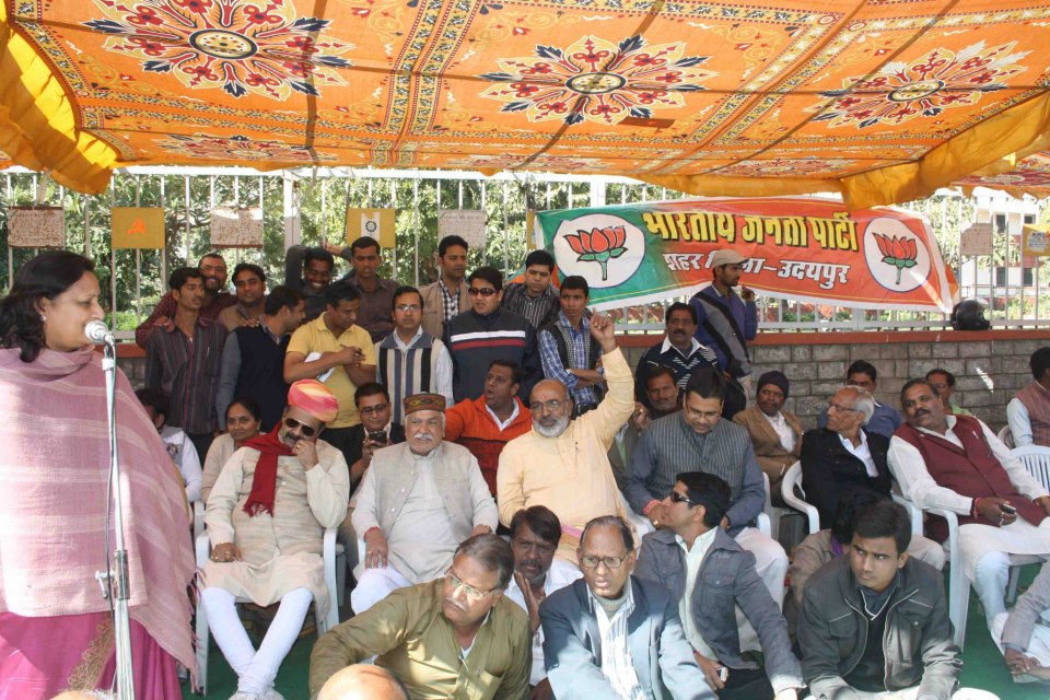 379238_142346769257197_1970219932_nउदयपुर, । भारतीय जनता पार्टी के राष्ट्रव्यापी आह्वान पर केन्द्रीय गृहमंत्री सुशील कुमार शिंदे द्वारा संघ व भाजपा के शिविरों में आतंकी तैयार करने के बयान के खिलाफ जिला मुख्यालयों पर धरना व प्रदर्शन के अन्तर्गत जिला कलेक्ट्री पर शहर व देहात जिला द्वारा धरना दे प्रदर्शन किया गया।
