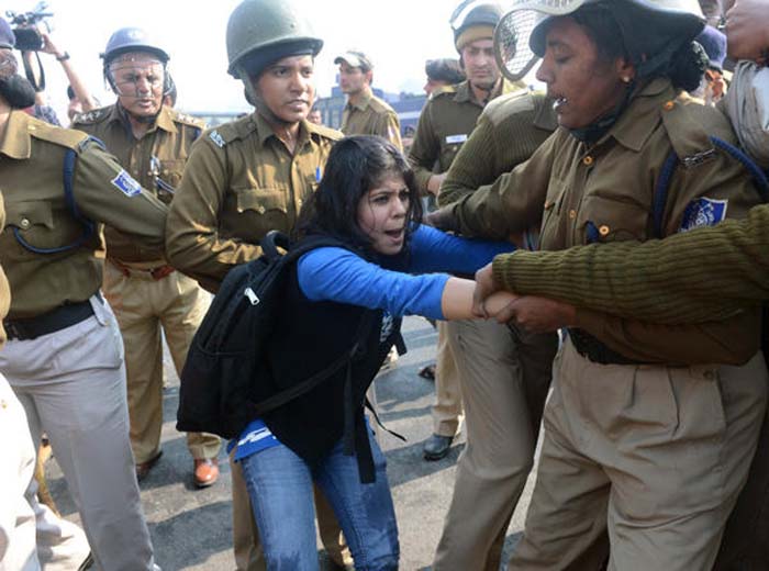 प्रदर्शनकारियों में बड़ी संख्या में लड़कियां भी थीं. प्रदर्शनकारियों पर पहले पानी की तेज़ बौछारें की गईं जिसके बाद लाठीचार्ज़ भी किया गया.