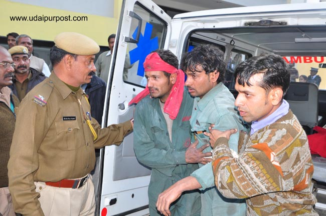 उदयपुर संवाददाता के अनुसार हिंदुस्तान जिंक के दरीबा माइंस में विषैली गैस रिसाव से अचेत हुए प्रोसेस एसोसिएट दौसा निवासी निरज (29) पुत्र सुभाष अग्रवाल, इंजिनियर गौरव(24) पुत्र गिरीराज विजय, प्रोसेस एसोसिएट जोधपुर निवासी मुकेश सिगेरिया (25) पुत्र कालूराम, फलासिया निवासी रतन (30) पुत्र श्यामलाल, वेल्डर कपासन निवासी शिवलाल (29) पुत्र देवीलाल माली, नागौर निवासी मनोज (30) पुत्र जेठूसिंह, रतलाम निवासी दशरथ कीर (29) पुत्र रामसिंह, कोटडी निवासी शंकरलाल जाट (32) पुत्र माधूजी, राजपुरा निवासी जगदीश(26) पुत्र रामलाल जाट, किशन जाट(28) को उपचार के लिए उदयपुर के एक निजी चिकित्सालय लाया गया जहां सभी घायलों की खतरे से बाहर बताई गई है।