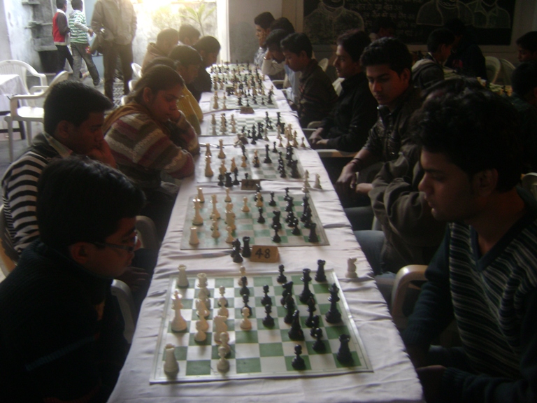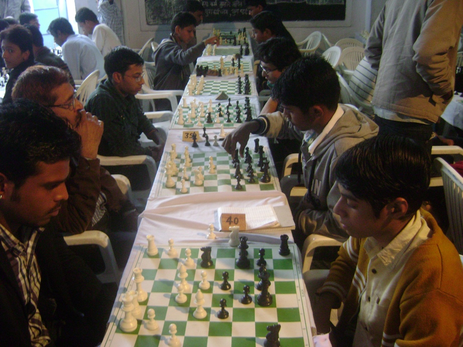 DSC000560श्री तैलिक साहू मेवाड़ बैठक सेवा समिति द्वारा चेस इन लेकसिटी के तत्वावधान में चतुर्थ शंकरलाल मंगरूड़िया स्मृति ओपन शतरंज प्रतियोगिता के दूसरे दिन रौचक व कड़े मुकाबले देखने को मिले। आयोजन सचिव विकास साहू ने बताया कि सिनियर वर्ग में हर्षित शर्मा व जुनियर वर्ग में मंथन चित्तौड़ा व स्वयं भार्गव 5 अंको के साथ बढ़त बनाए हुए है। प्रतियोगिता में कुल 95 शातिर उदयपुर, कोटा, चित्तौड़, राजसमन्द से हिस्सा ले रहे है, जिसमें से 11 फिडेरेटेड खिलाड़ी है। प्रतियोगिता के मुख्य निर्णायक रिषी सालवी अनुसार पाँच चक्र पश्चात् बढ़त बनाए शातिर इस प्रकार है-