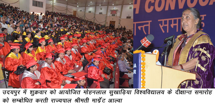 उदयपुर, छात्र जीवन में दीक्षान्त समारोह को एक बडा मील का पत्थर बताते हुए कहा कि यह एक अवसर है कि प्रयास, समर्पण, समय और धैर्य के साथ एक प्रतिष्ठित शैक्षणिक योग्यता प्राप्त करने में गुजर गया। आप विश्वविद्यालय में बिताये गये खुशनुमा दिनों तथा आज के दिन को जीवन में याद करेंगे जो बाहर की दुनियां में आपकी भूमिका धैर्यपूर्वक निभाने के लिए मार्ग प्रशस्त करेगा। यह विचार आज यहां महामहिम राज्यपाल श्रीमती माग्र्रेट आल्वा ने मोहनलाल सुखाड़िया विश्वविद्यालय के 20वें दीक्षान्त समारोह में अपने उद्बोधन में व्यक्त किये। उन्होंने विधिवत दीक्षान्त समारोह प्रारम्भ करने की अनुमति प्रदान की।