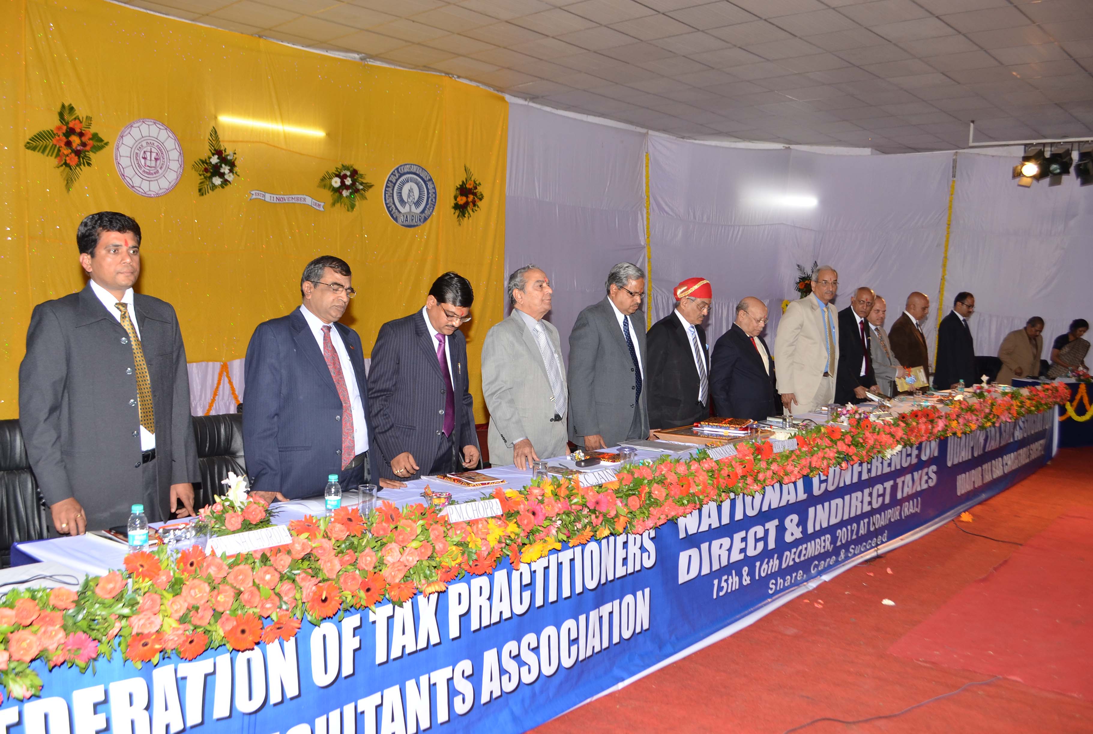 इससे पूर्व शेयर, केयर और सक्सीड की थीम पर आयोजित होने वाली राष्ट्रीय संगोष्ठी का उद्घाटन समारोह हुआ कार्यक्रम के मुख्य अतिथि सुप्रीम कोर्ट के न्यायाधीश न्यायमूर्ति स्वतंत्र कुमार ने दीप प्रजवल्लन करके विधिवत शुरूआत की 12 बजे पहला तकनीकी सत्र शुरू हुआ। जिसका विषय एचयूएफ अंडर डायरेक्ट टैक्सेस एंड सिविल लॉ रहा। सुप्रीम कोर्ट के सीनियर एडवोकेट श्री एन.एम. रांका, जयपुर की अध्यक्षता में प्रथम तकनीकी सत्र में हिन्दू अविभाजित परिवार से संबंधित नवीन प्रावधानों पर चर्चा की गई, प्रमुख वक्ता श्री अश्विन सी. शाह व गुजरात हाईकोर्ट के सीनियर एडवोकेट श्री के.एच. काजी, अहमदाबाद ने हिन्दू अविभाजित परिवार के बारे में विभिन्न अवधारणाओं को स्पष्ट करते हुए बताया कि 01.09.2005 के बाद बेटी भी रू..स्न में पुत्र के समकक्ष विभिन्न अधिकारों की हकदार है। दूसरे तकनीकी सत्र में रियल एस्टेट लेन-देन व्यवहारों के संबंध में विभिन्नकर से संबंधित एडवोकेट ज्वलंत मुद्दों पर श्रीमति प्रेमलता बंसल, एडवोकेट, दिल्ली की अध्यक्षता में व अहमदाबाद हाईकोर्ट के सीनियर एडवोकेट भरत अग्रवाल के सानिध्य में भूमि संबंधी लेनदेनों के आयकर के प्रावधानों की बारिकीयों को मुम्बई से पधारे एच.एम. मोतीवाला ने व्याख्या की। जी.एस. वेंकटरमानी, सी.ए., बैंगलौर ने भूमि संबंधी लेन-देनों के वैद व सेवाकर से संबंधित सभी पक्षों की जानकारी दी तथा श्री संजय झंवर, एडवोकेट, जयपुर ने भूमि संबंधी लेन-देनों के भूमि हस्तान्तरण व विकसित करने के अनुबन्ध करने के दस्तावेजों की विस्तृत जानकारी प्रदान की। सुहानी शाम को भव्य सांस्कृतिक संध्या का आयोजन फील्ड क्लब पर किया गया जिसमें सभी प्रतिभागी व उनके परिवार ने बढ़-चढ़ कर भाग लिया। दीवाना एण्ड पार्टी के कलाकारों व स्थानीय कलाकारों द्वारा रंगारंग प्रस्तुतियां दी जिसका सभी ने शानदार लुत्फ उठाया। कार्यक्रम में ऑल इंडिया फेडरेशन ऑफ टैक्स प्रेक्टिशनर्स के चेयरमेन एसके पोद्दार,राजस्थान टैक्स कंसलटेंट एसोसिएशन के चेयरमेन पंकज घीया , कांफे्रस कमेटी के चेयरमेन डॉ. ओपी चपलोत ,उदयपुर टैक्स बार एसोसिएशन के अध्यक्ष प्रकाश जावरिया, उदयपुर टैक्स बार चेरिटेबल सोसायटी के चेयरमेन किशोर कुमार पाहुजा तथा कांफ्रेंस सचिव डॉ. एससी जैन भी उपस्थित थे।