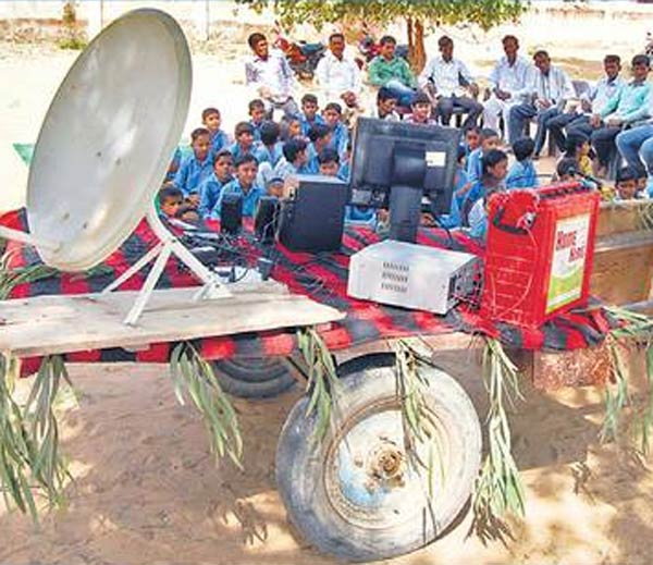 राजस्थान के हनुमानगढ़ जिले के एक गांव में शुक्रवार को पीएम की क्लास के लिए स्कूल में बैलगाड़ी पर इंतजाम करने पड़े। टीवी और डिश एंटीना की व्यवस्था की गई। बगल के गांवों से भी बच्चे बुलाए गए।