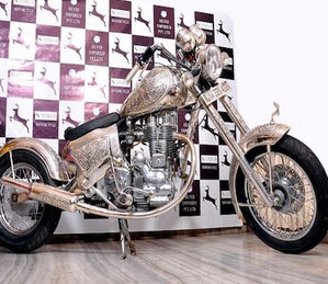 जयपुर. जेम्स और ज्वेलरी के लिए मशहूर जयपुर में इन दिनों रॉयल लुक वाली चांदी की बाइक तैयार हो रही हैं। खास बात यह है कि बाइक में इस्तेमाल की जा रही चांदी में राजस्थानी शैली की खूबसूरत नक्काशी की गई है। फिलहाल यहां ऐसी तीन बाइक बनाई जा रही हैं जो मुंबई भेजी जाएंगी। इससे पहले भी यहां चांदी की एक बाइक प्रोटोटाइप के रूप में तैयार की गई थी, जिसमें 80 किलो चांदी का इस्तेमाल किया गया था। बाइक आठ माह में बनकर तैयार हुई थी। उसे मुंबई में हुए इंडिया इंटरनेशनल ज्वेलरी शो में प्रदर्शित किया गया था। इन बाइक्स को तैयार करवा रहे सिल्वर एम्पोरियम के कांति भाई मेहता ने बताया कि इनके बनकर तैयार होने में करीब 3 से 4 महीने लगेंगे।