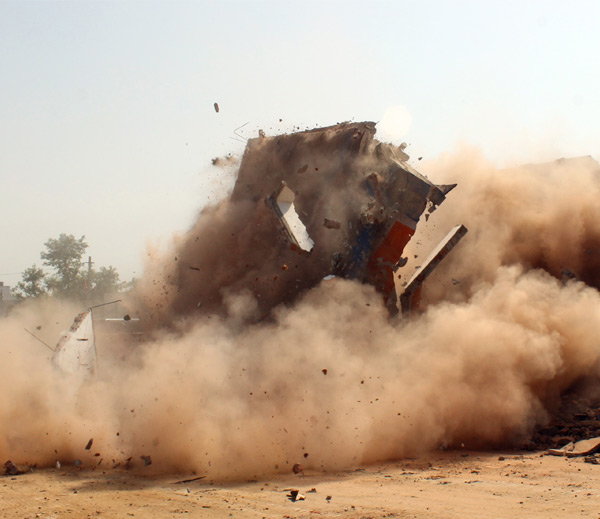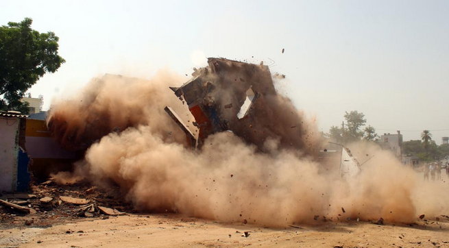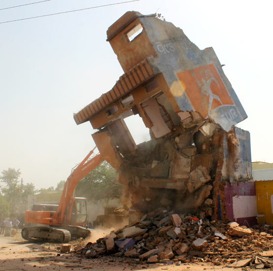 15 मिनट में कई बार बढ़ी धड़कनें : कार्रवाई में पोकलैंड पहला मकान गिराने आगे बढ़ा तो लोगों की धड़कनें बढ़ गईं। जैसे ही पोकलैंड ने मकान के पिलर गिराए कि सहमे लोगों की आंखें खुली रह गई। अब मकान चार पिलर पर था। जैसे ही पोकलैंड ने मकान दो पिलर को टक्कर मारी की मकान के गिरने की आवाज लोगों के कानों में काफी देर तक गूंजती रही। उसके बाद क्षेत्र में उड़ी धूल से लोग काफी परेशान रहे। यह कार्रवाई महज 15 मिनट में पूरी कर ली गई। कार्रवाई के दौरान जब तीन मंजिला भवन गिराया तब इस भवन के हिलने से अधिकारियों के चेहरे पर भी चिंता के भाव दिखे। सफलतापूर्वक इस भवन को गिराने पर पोकलैंड ऑपरेटर को नकद इनाम दिया गया।
