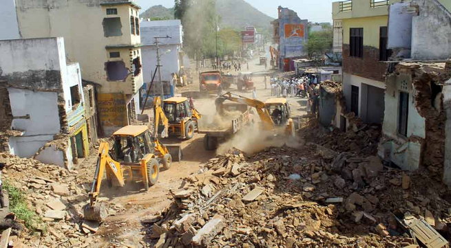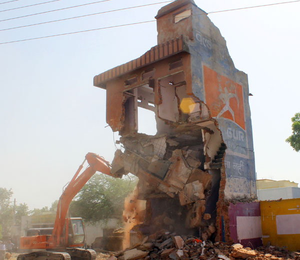 7689_49उदयपुर. गोवर्धन विलास क्षेत्र की सड़क सीमा में आ रहे बोटल नेक एरिया से यूआईटी ने सोमवार को सात घंटे में 14 मकान ध्वस्त कर दिए। शाम होते-होते 25 फीट चौड़ी बोटल नेक 80 फीट चौड़ी ब्रॉड नेक में बदलने की राह आसान हो गई। हालांकि अभियान मंगलवार को भी चलेगा और अभी मलबा हटाया जा रहा है। यूआईटी दल सुबह साढ़े पांच बजे तैनात हो गया। मकानों को ढहाते देखने आसपास के लोग भी जमा हो गए। शाम तक चली कार्रवाई में यूआईटी सचिव रामनिवास मेहता ने बताया कि मलबा साफ करने के बाद गिट्टी बिछाने के बाद रोड के दोनों तरफ नालियां बना दी जाएंगी।