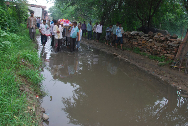 उदयपुर। सरकारी मशीनरी के ढीले रवैये के कारण गांवों में लोग नारकीय जीवन जीने को मजबूर है। वल्लभगनर के ग्राम पंचायत अमरपुरा में आठ माह पहले सीसी सड़क के आदेश हो चुके हैं, लेकिन कार्य अवधि पूरी होने के बावजूद ना तो सड़क का काम हुआ है। रोड पर बारिश की वजह से गड्ढे, कीचड़ और पानी भरा हुआ है। हर काम के लिए गांव वाले कीचड़ पानी भरी सड़क से गुजरने को मजबूर है। यहां तक कि किसी की मौत हो जाए, अंतिम यात्रा भी इस कीचड़ से भरे रास्ते से ही लेकर जानी पड़ती है।