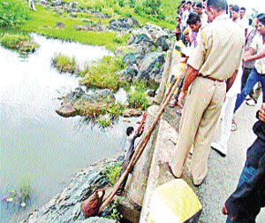 RPKGONL010110920147Z20Z27 AMधरियावद। यहां चार किमी दूर जाखम नदी पुलिया के नीचे बंद बोरे में एक अज्ञात महिला का शव मिलने से क्षेत्र में सनसनी फैल गई। दोपहर साढे तीन बजे राहगीर की सूचना पर धरियावद थानाधिकारी भैरू सिंह मय जाब्ते मौके पर पहुंचे और ग्रामीणों की की कड़ी मशक्कत के बाद शव पुलिया से बाहर निकाला। शव की शिनाख्ता के लिए धरियावद पुलिस ने आधुनिक तकनीकी का सहारा लेते हुए फोटो मोबाइल वॉटशप पर डाला।