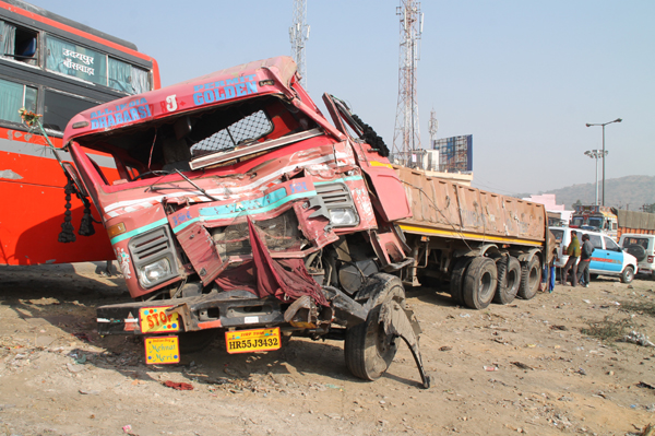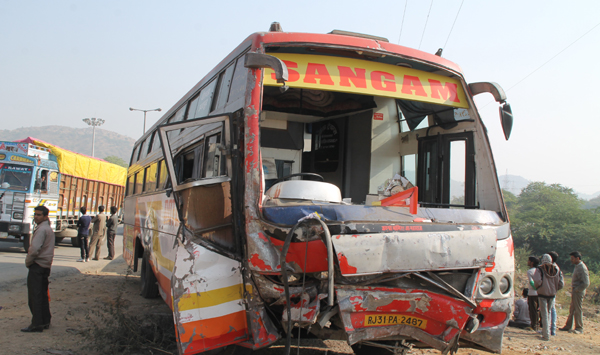 जानकारी के अनुसार सुबह साढ़े पांच बजे गुजरात से चित्तौड़ जा रहा एचपी गैस से भरा टैंकर देबारी पावर हाउस पर अनियंत्रित होकर पलट गया। हादसे के बाद देबारी निवासी विजयसिंह ने अन्य ग्रामीणों के साथ मिलकर दो बाइक उदयपुर-चित्तौड़ रोड पर लगाकर यातायात रोक दिया, लेकिन कुछ ही देर बाद सूरत से यूपी की तरफ जा रहा कपड़ों की गांठों से भरा एक टे्रलर नहीं रुका और रोंग साइड जाकर चित्तौड़ की तरफ से आ रही वीडियोकोच से भिड़ गया। पीछे से आ रही कार वीडियोकोच में जा घुसी। हादसे में टे्रलर ड्राइवर प्रतापगढ़ (यूपी) निवासी अयूब (५५), खलासी जीशान (५५) पुत्र जाहिद, वीडियोकोच में सवार उदयपुर निवासी मंजू पत्नी ओमप्रकाश और वीडियोकोच का ड्राइवर घायल हो गए, जिन्हें १०८ एम्बुलेंस बुलाकर एमबी हॉस्पीटल पहुंचाया गया, जहां मंजू को प्राथमिक उपचार के बाद छुट्टी दे दी गई, जबकि अन्य घायलों को भर्ती किया गया। सुबह साढ़े पांच से साढ़े दस बजे तक चले रेस्क्यू ऑपरेशन में करीब दो सौ लोग जुटे रहे। मौके पर एडीएम छोगाराम देवासी, एएसपी सिटी डॉ. राजेंद्र भारद्वाज, डिप्टी माधुरी वर्मा, सुखेर थानाधिकारी हरेंद्रसिंह, प्रतापनगर थानाधिकारी चंद्रप्रकाश पुरोहित और भारी जाब्ता मौजूद रहा। इस दौरान पांच फायर बिग्रेड और आठ क्रे न की सहायता से टैंकर और अन्य वाहनों का हाइवे से हटवाकर यातायाता बहाल करवाया गया।