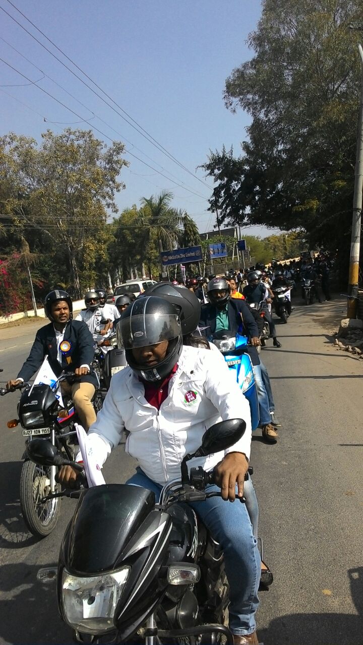 उदयपुर. वाहनों का काफिला और सभी के सिर पर हेलमेट। संदेश यही कि हेलमेट बोझ नहीं आपकी जान की सलामती के लिए है।