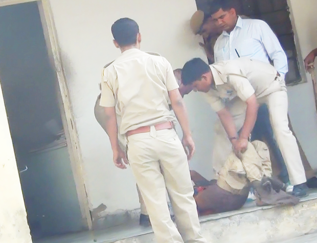 पता चला है कि थाने में लाने के बाद विक्षिप्त को बांधने से पूर्व पुलिसकर्मियों ने उसकी जमकर लातों-घुसतों से पिटाई की, जबकि पुलिस को चाहिए था कि उसे थाने में बांधने के बाद मानोरोग चिकि त्सक को बुलाते और उसका उपचार करवाते, लेकिन करीब पौने तीन घंटे चले इस घटनाक्रम में न तो मनोरोग चिकित्सक को बुलाया गया और ना ही उसका कोई उपचार करवाया गया। इस बीच विक्षिप्त युवक के चिल्लाने पर उसके मुंह में कपड़ा और ठूंस दिया और उसे नंगा करके उलटा पटककर लाठियां मारी गईं। बाद में उसके रस्सी से उसके हाथ और पैरों को अगल-अलग बांध दिया। उसे करीब सात बजे आशाधाम आश्रम में भर्ती कराया गया, जहां उसकी मरहम-पट्टी की गई।