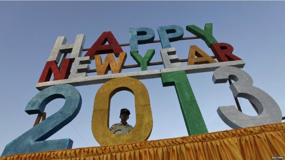 ऑस्ट्रेलिया का शहर सिडनी दुनिया के उन चंद शहरों में से एक है जहां नव वर्ष ने सबसे पहले दस्तक दी.ऑस्ट्रेलिया के कई शहरों में नव वर्ष के स्वागत में जबर्दस्त आतिशबाज़ी की गईलोगों ने आतिशबाज़ी का खूब लुत्फ उठाया.आतिशबाज़ी से जगमगाता यह स्कॉटलैंड का आसमान है.रौशनी में नहाया हांगकांग.जापान की राजधानी टोक्यो के प्रिंस पार्क में नए साल का जश्न इस तरह मनाया गया.इंडोनेशिया की राजधानी जकार्ता में नए साल का स्वागत इस तरह किया गया.रेत से तस्वीरें उकेरने वाले वाले भारतीय कलाकार सुदर्शन पटनायक ने पुरी के तट पर नव वर्ष का स्वागत इस तरह किया.भारत में नए साल का जश्न हर साल के मुकाबले फीका रहा. बलात्कार की शिकार लड़की को स्कूली बच्चों ने इस तरह श्रद्धांजलि दी.बर्मा में नये साल का जश्न सही मायने में पहली बार मना. सैन्य शासकों ने लोगों के एकजुट होने पर रोक लगा रखी थी.