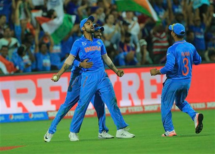 विराट कोहली के शानदार शतक, शिखर धवन और सुरेश रैना के अर्धशतकों के बाद मोहम्मद शमी की घातक गेंदबाजी की बदौलत टीम इंडिया ने एडिलेड ओवल में खेले गए वर्ल्ड कप के ग्रुप बी मुकाबले में पाकिस्तान को 76 रनों से हराया।