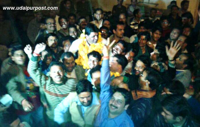 bar association udaipur 1रविवार को बार एसोसिएशन के चुनाव के लिए मतदान सुबह 10 बजे से शुरू हुआ जो दो बजे तक चला । इस दौरान कोर्ट परिसर पुरा चुनावी रंग में रंगा नजर आया। कोर्ट का एक गेट बंद होने से तहसील छोर वाले गेट पर जाम की स्थिति रही ओर वहीं पर प्रत्याशियों के पोस्टर लगे हुए थे। सुबह 10 बजे से ही मतदाताओं को लुभाने के लिए प्रत्याशी ओर उनके समर्थक गेट पर जमावडा लगाये खडे थे। हर समर्थक अपने पहचान वाले अधिवक्ताओं को मोबाइल पर अपने प्रत्याशी को समर्थन में मत देने का आग्रह करते रहे तथा अनियमित अधिवक्ताओं को भी निजी वाहनों से आव भगत कर लाया गया चार घंटे चले मतदान में कोर्ट परिसर खचाखच भरा रहा। अध्यक्ष पद के उम्मीदवारों के कई राजनैतिक समर्थन भी कोर्ट परिसर में दिखे जिसमें बीजेपी और कांग्रेस दोनो पार्टियों के थे ये माना जाता है कि भरत जोशी भाजपा और मनीष श्रीमाली कांग्रेस समर्थक है। 2 बजे मतदान पूर्ण होते होते आखरी समय तक मतदाता को लाया जाता रहा। कुल 1340 अधिवक्ताओं ने मतों का प्रयोग किया अध्यक्ष पद के लिए भरत जोशी ने 643 वोट हांसिल कर अपने निकटम प्रतिद्घंदी मनीष श्रीमाली को 241 वोट से हराया महामंत्री पद पर भरत वैष्णव ने 575 वोट हांसिल कर अपने निकटतम प्रतिद्घंदी हर्ष राम को २203 वोट से हराया उपाध्यक्ष पद पर 571 वोट पाकर मंजुर हुसैन विजयी रहे । सचिव पद के लिए अंकुर टांक विजयी रहे जिन्हे 775 वोट मिले। वित्तिय सचिव के लिए स्वाती रॉबर्ट विजयी रहे जिन्हे 906 मत मिले तथा पुस्तकालय सचिव पद पर अनिल द्विवेदी 694 वोट लाकर विजयी रहे।