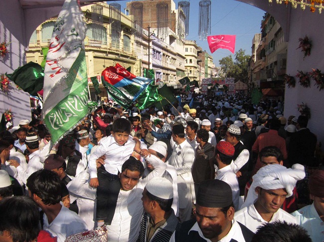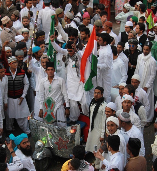 उदयपुर, अंचल में शुकवार को मुस्लिम समुदाय द्वारा ईद मिलादुन्नबी पर्व अकीदत एवं जोश खरोश के साथ मनाया गया। इस अवसर पर अंजुमन चौक में आयोजित दो दिवसीय जश्न गुरूवार रात सम्पन्न हुआ जिसमें ऑलेमाओं द्वारा तकरीरे की गई। शुक्रवार को जुलूसे मोहम्मदी का आयोजन हुआ।गणतंत्र दिवस के एक दिन पहले निकले जुलूसे मोहम्मदी में वतन परस्ती दिखाई दी। युवाओं और बच्चों ने तिरंगा लहराकर भी खुद को गौरवान्वित महसूस किया। जुलूस में अन्य धर्मो के लोगों की ओर से जुलूस का कई जगह इस्तकबाल किया गया। जुलूस में ‘कौन शहरे मक्का में सुबह-सुबह आया है, जिसके नूर से आलम सारा जगमगाया है..’, ‘अक्ल सब की हैरां है, देखकर शहेदीं को ये बशर तो है, लेकिन क्यों न इनका साया है..’ आदि कलाम गूंजते रहे।