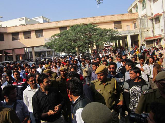 घटना की सूचना मिलते ही क्षत्रिय महासभा व बी.एन. संस्थान के छात्र भारी संख्या में अस्पताल परिसर में एकत्रित हो गए। घटना से आक्रोशित बी.एन. छात्रों द्वारा हत्यारों की गिरप*तारी, मृतक के बडे भाई को सरकारी नौकरी, दस लाख रूपये मुआवजा, पिता व परिवार को मुप*त मेडिकल सुविधा और आरोपी छात्रों को कॉलेज से निष्कासन की पांच सूत्रीय मांग पर लिखित में देने तक पोस्टमार्टम कार्यवाही नहीं करने पर अड गये। इस संबंध में मृतक का शव मोर्चरी में पडा है वहीं दूसरी ओर पांच सूत्रीय मांगों को लेकर अधिकारियों से वार्ता जारी है। मामले की गंभीरता को देखते हुए पुलिस अधीक्षक ने चिकित्सालय पहुंच भारी मात्रा में पुलिस बल तैनात करवाया है। पुलिस ने त्वरित कार्यवाही करते हुए हमलावरों की तलाश के लिए विभिन्न टीमें गठित कर विरोधी गुट के घायल छात्र धर्मेश टांक को हिरासत में लिया है।